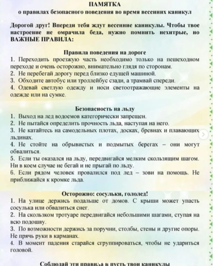 Оқушыларға көктемгі демалыс туралы ескерту!